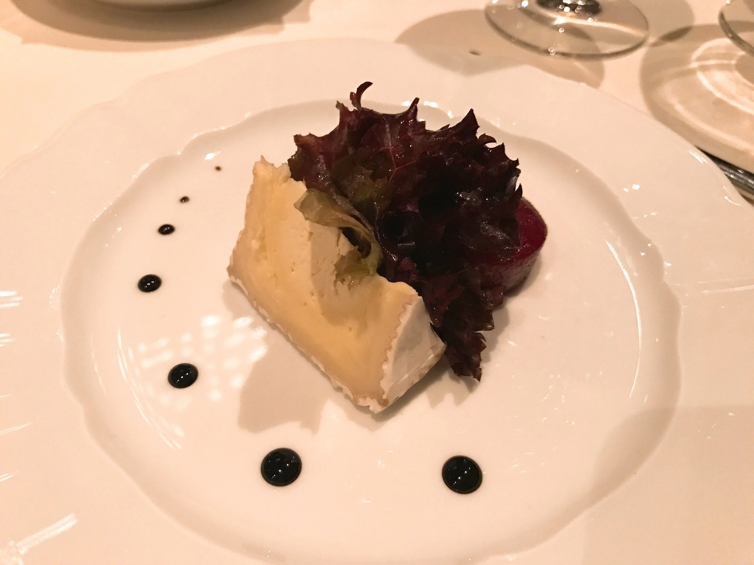 As we progressed from savory to sweet, a lovely presentation of Chaource was brought to the table. Charouce is a French cheese made with cow's milk and typically produced in the Champagne-Ardenne region. This course was served with Bartlett Pears and a brilliant piece of Lolla Rossa. Let's face it, I wish all of my lettuce was this gorgeous and frilly! The acidity of the pear coupled with the creaminess of the cheese was the respite for my palate.