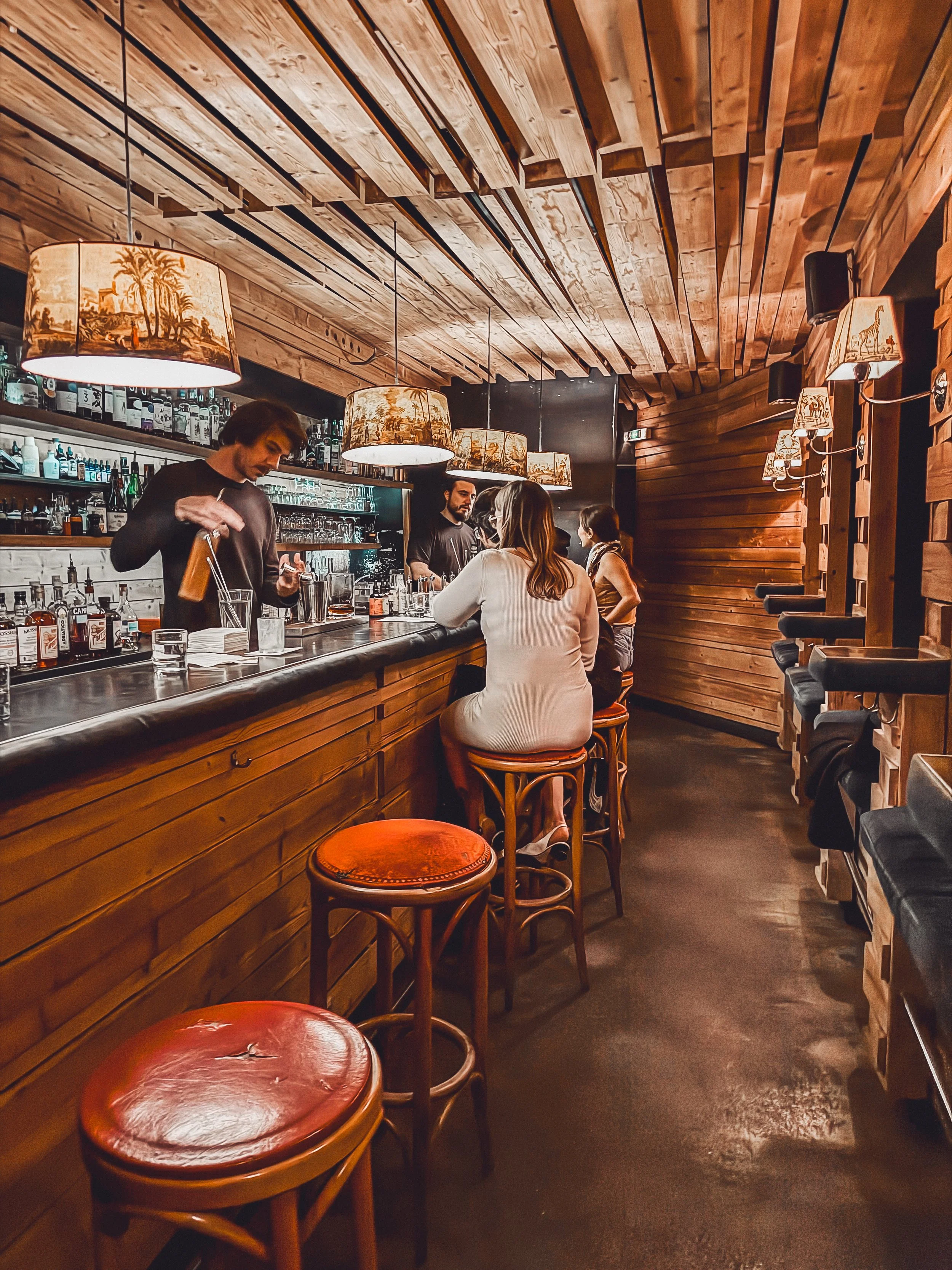If you’re searching for that elusive hidden gem in Paris, the kind of place where you slip through an unmarked door and instantly feel you’ve uncovered something special, Castor Club is it. Nestled on a quiet side street near Saint Germain des Prés, this intimate cocktail bar greets you with a discreet, wood-clad entrance. It’s so discreet that I walked by it and missed it the first time. Inside, you’re transported into a cozy, dimly lit space that’s equal parts speakeasy and mountain lodge, featuring wood paneling, plush velvet seating, and retro lamps casting a warm glow over the space. It’s the sort of spot that invites you to settle in, lower your voice, and truly savor the evening.