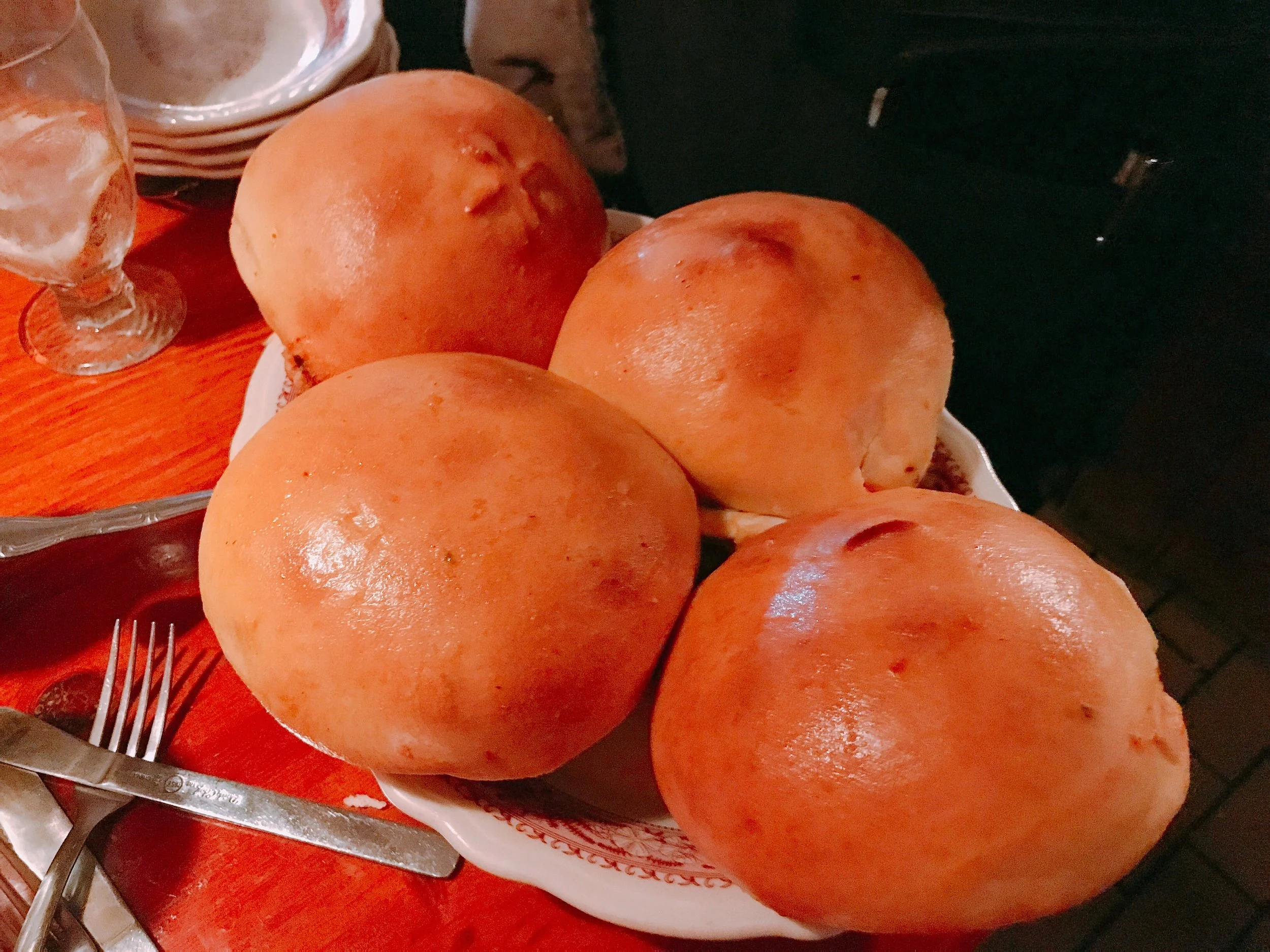 Thirty minutes later our pizza pot pies were delivered to the table. Believe me, I was beginning to question the entire experience at this point. I've certainly waited my fair share for food, but this was pushing it. Just as those thoughts entered my brain, the pizza pot pie aroma hit my nose and the cheesy goodness was presented. If you're anything like me (aka total cheese head) you can't help but drool! The picture below is rather underwhelming, right? It looks like four large bread rolls. But wait for it!