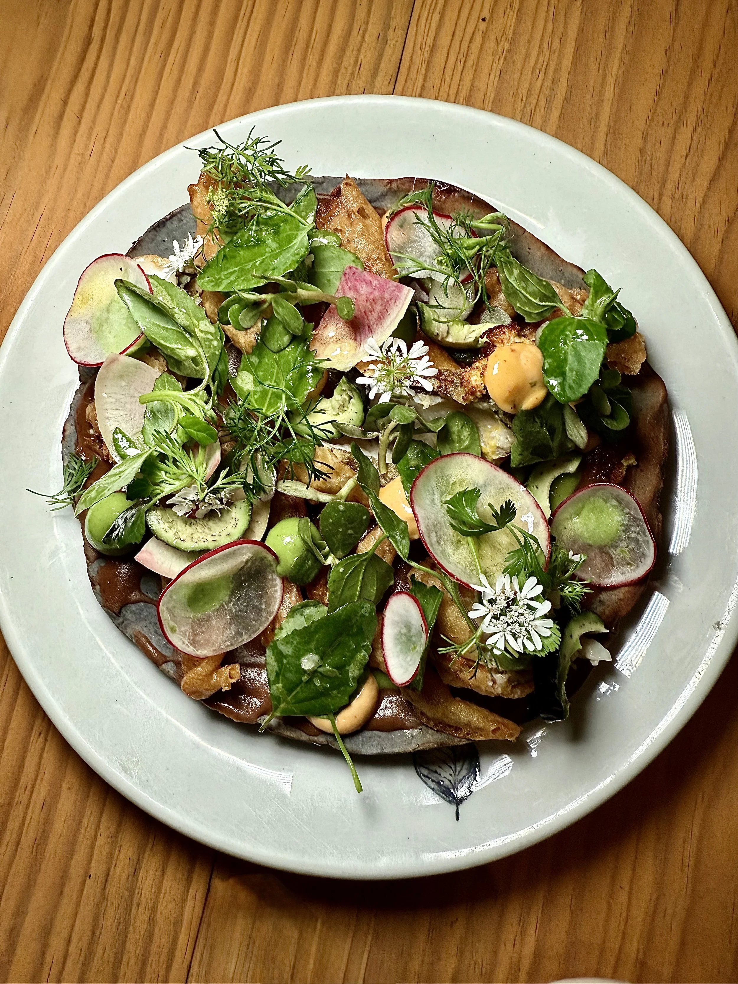 I’ll be the first to admit that every single dish hit, including the mixed green salad. The dishes that continue to replay in my mind well after the trip are the Lamb Birria, the Tempura Soft Shell Crab “ Tlayuda”, and the Lasagna. Heed my advice when I say, order these if you are lucky enough to have them on the menu. Particularly, the Tempura Soft Shell Crab “ Tlayuda”. Have you seen a prettier dish?