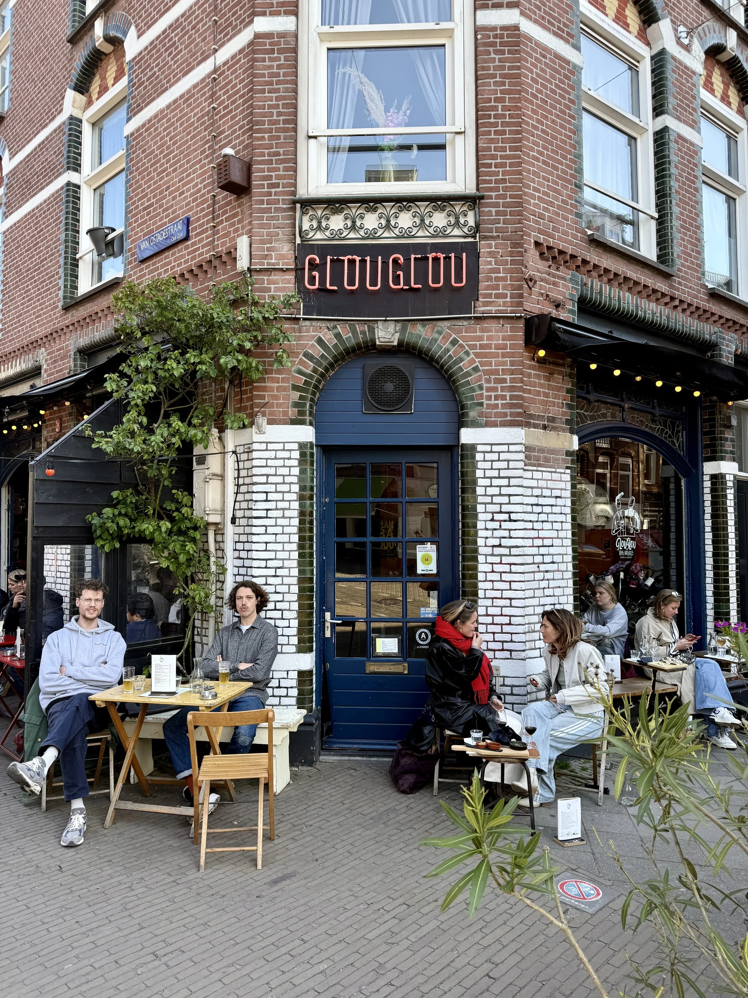 If you like your wine a little wild and your evenings effortlessly cool, then Glou Glou is calling your name. Tucked into the laid-back De Pijp neighborhood, this place is basically the artsy, fun friend of wine bars—laid-back, a little quirky, and very into natural wine (think less polished, more personality).