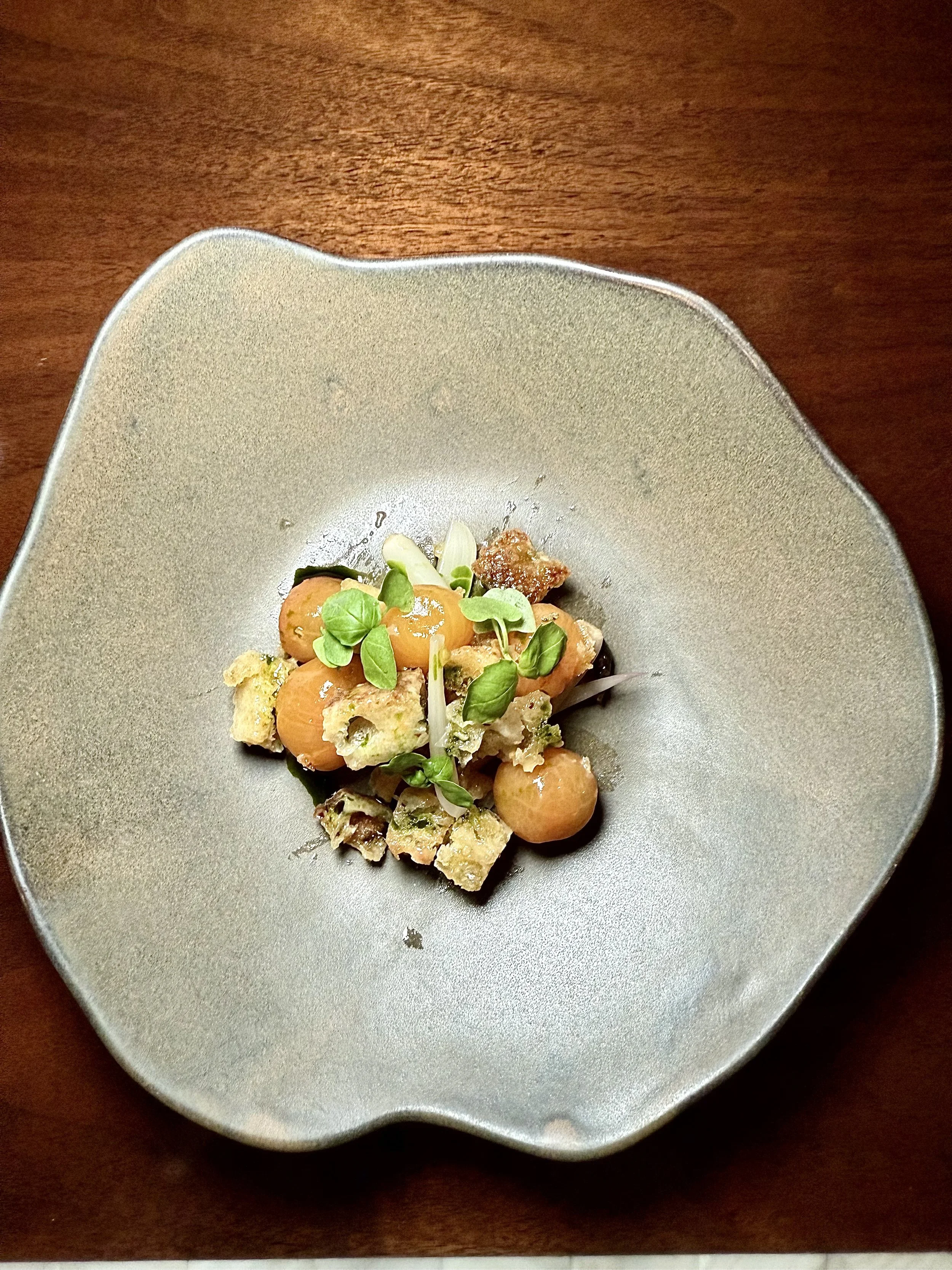Delicate slices of Bluefin Tuna are paired with cantaloupe and a bright, citrusy kumquat granita. It’s light, refreshing, and tastes exactly like summer, if summer wore linen and sipped Aperol by the sea.