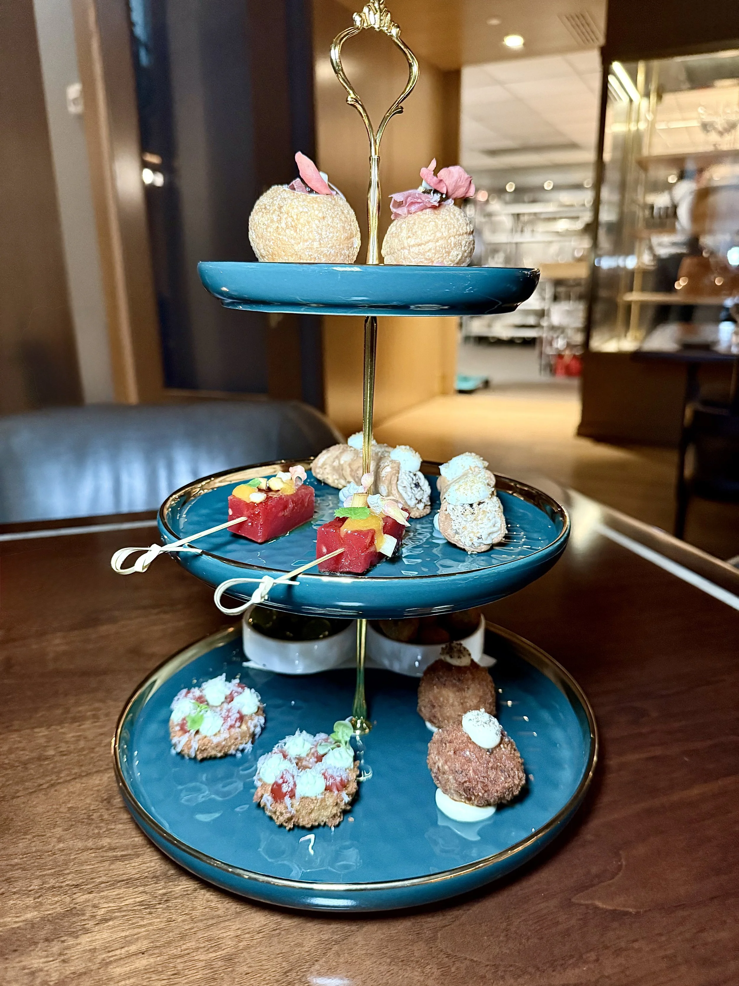 The meal kicks off with the Stuzzi Tower, a whimsical stack of savory delights that’s bound to make you smile. Highlights include the Arancini al Ragù (tiny crispy flavor bombs) and the Calvisius Caviar Bomboloni (just let that sink in). While the tower is included in the tasting menu, you can also order it à la carte for $32.00 per person. Pair it with a glass of bubbles and voilà: the chickest “ girl dinner” in town.