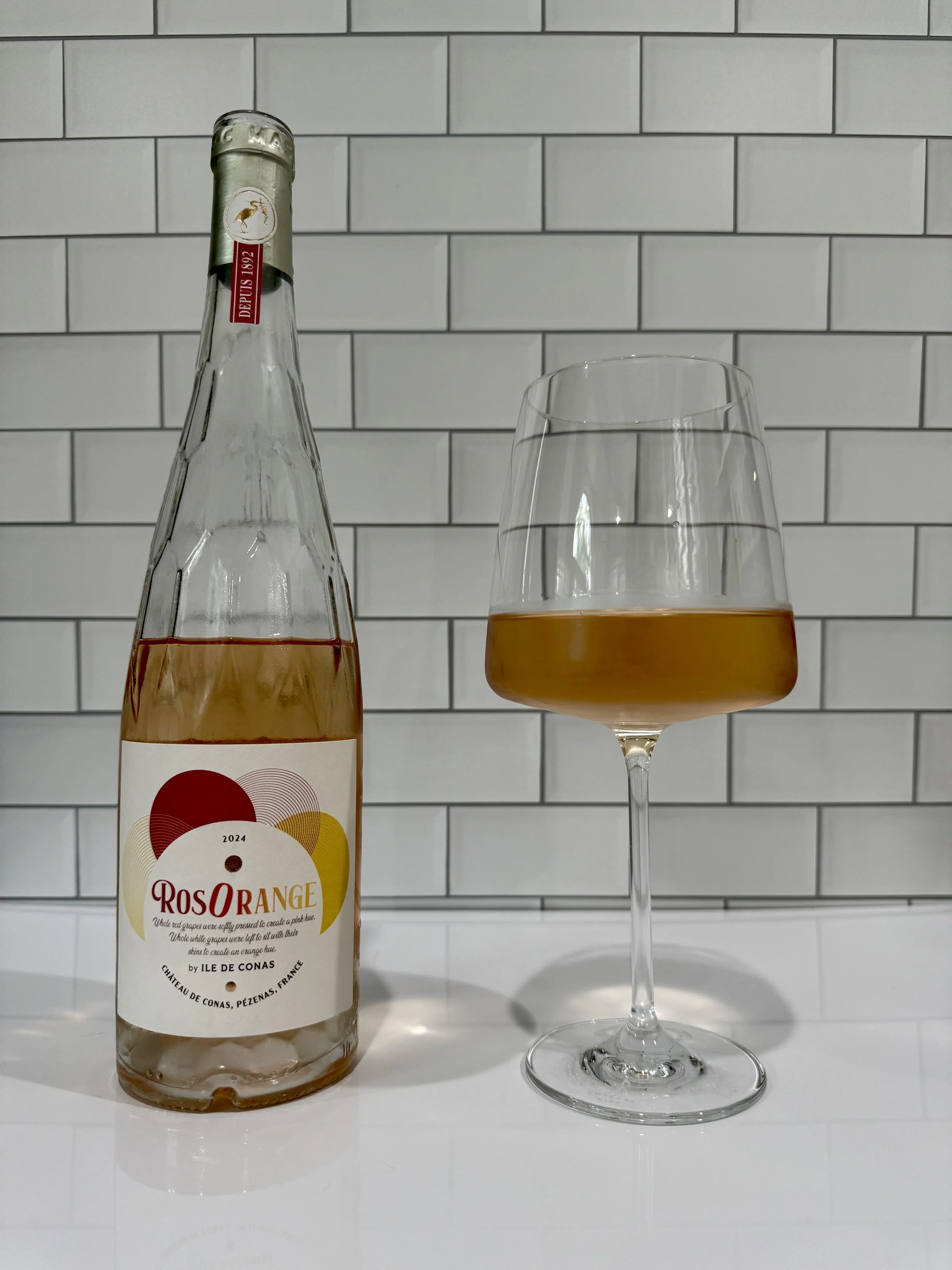 During my last visit to Trader Joe’s, I noticed a new bottle squeezed between the rosés and the singular bottle of Orange Wine they had in stock. If you’ve followed my wine journey for any length of time, you know I try every single Orange Wine that Trader Joe’s carries. From The Puppet, Slice, and even Tarongino, no bottle has been left behind. I spotted Ile De Conas RoseOrange on the shelf, and I have to admit, I was intrigued. The shelf tag gave minimal information: “ An elegant bridge between French Rosé and Orange Wine.”